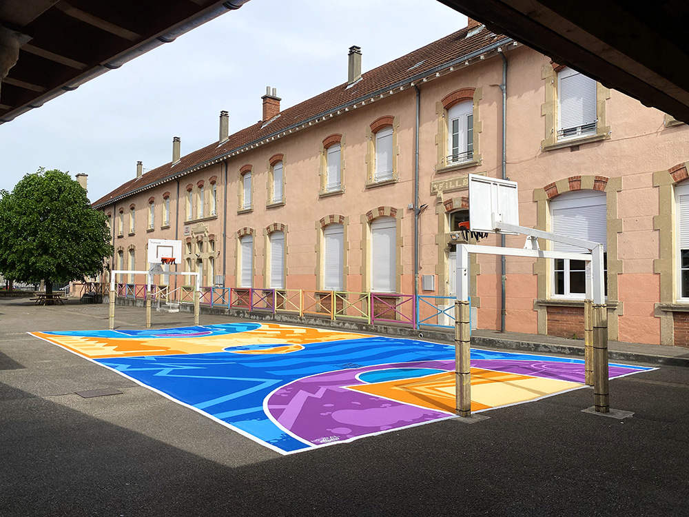 Le premier projet consiste en la création d’une fresque sur le mur de l’ancienne papeterie, vestige significatif du patrimoine industriel de la commune. Le second projet implique la réalisation d’une fresque au sol pour le terrain de sport de la cour de récréation de l’école primaire du quartier.